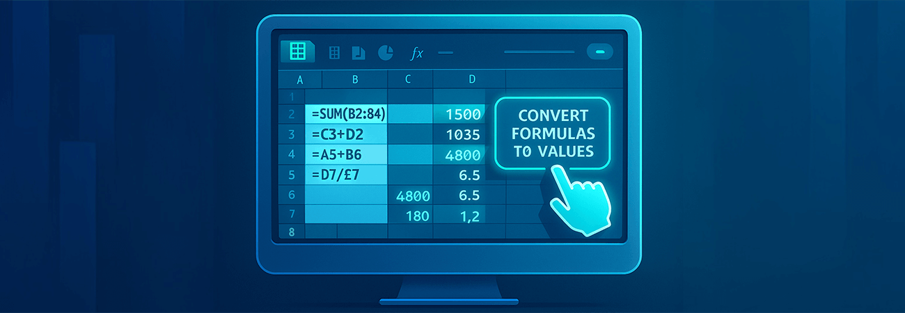 To streamline this process, a simple yet powerful solution was implemented: a custom “To Values” button added directly to Excel’s Ribbon interface. This button automates the entire process in a single click—converting selected formulas into values instantly, without altering formatting or requiring extra navigation.